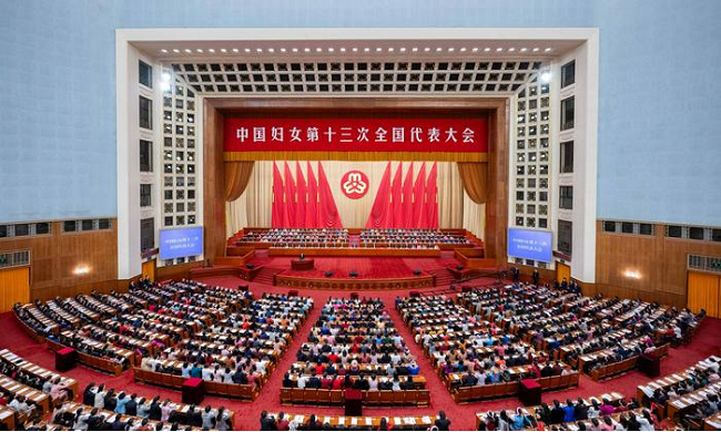 10月23日,中国妇女第十三次全国代表大会在人民大会堂开幕。习近平、李强、赵乐际、王沪宁、蔡奇、李希等党和国家领导人到会祝贺,丁薛祥代表党中央致词。