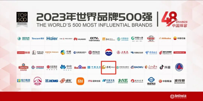 12月13日,由世界品牌实验室(World Brand Lab)独家编制的2023年度(第二十届)《世界品牌500强》排行榜揭晓。保利集团从全球约8000个知名品牌中脱颖而出,首次入榜,在新入选的中国品牌中排名第一,位列总榜第325位。