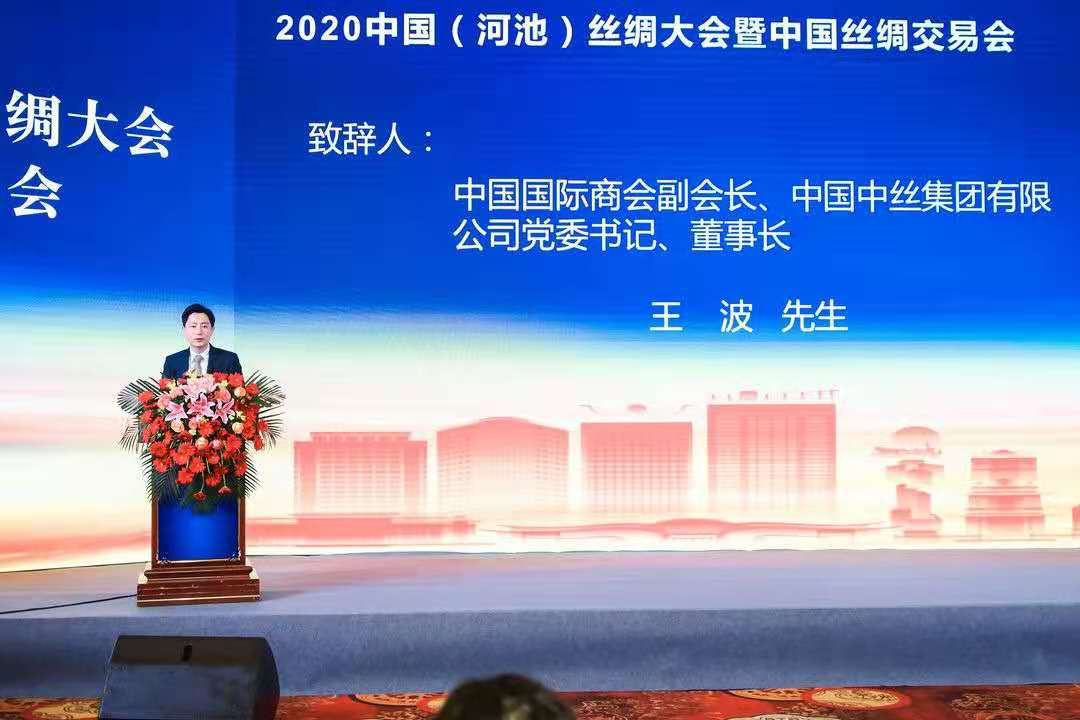 11月25日至27日,由河池市人民政府和中国丝绸协会共同主办、中丝集团参与协办的2020中国(河池)丝绸大会暨中国丝绸交易会在广西召开。中丝集团党委书记、董事长王波,来自国家相关部委以及行业协会的领导嘉宾、专家学者、企业家代表等共400余人参会。