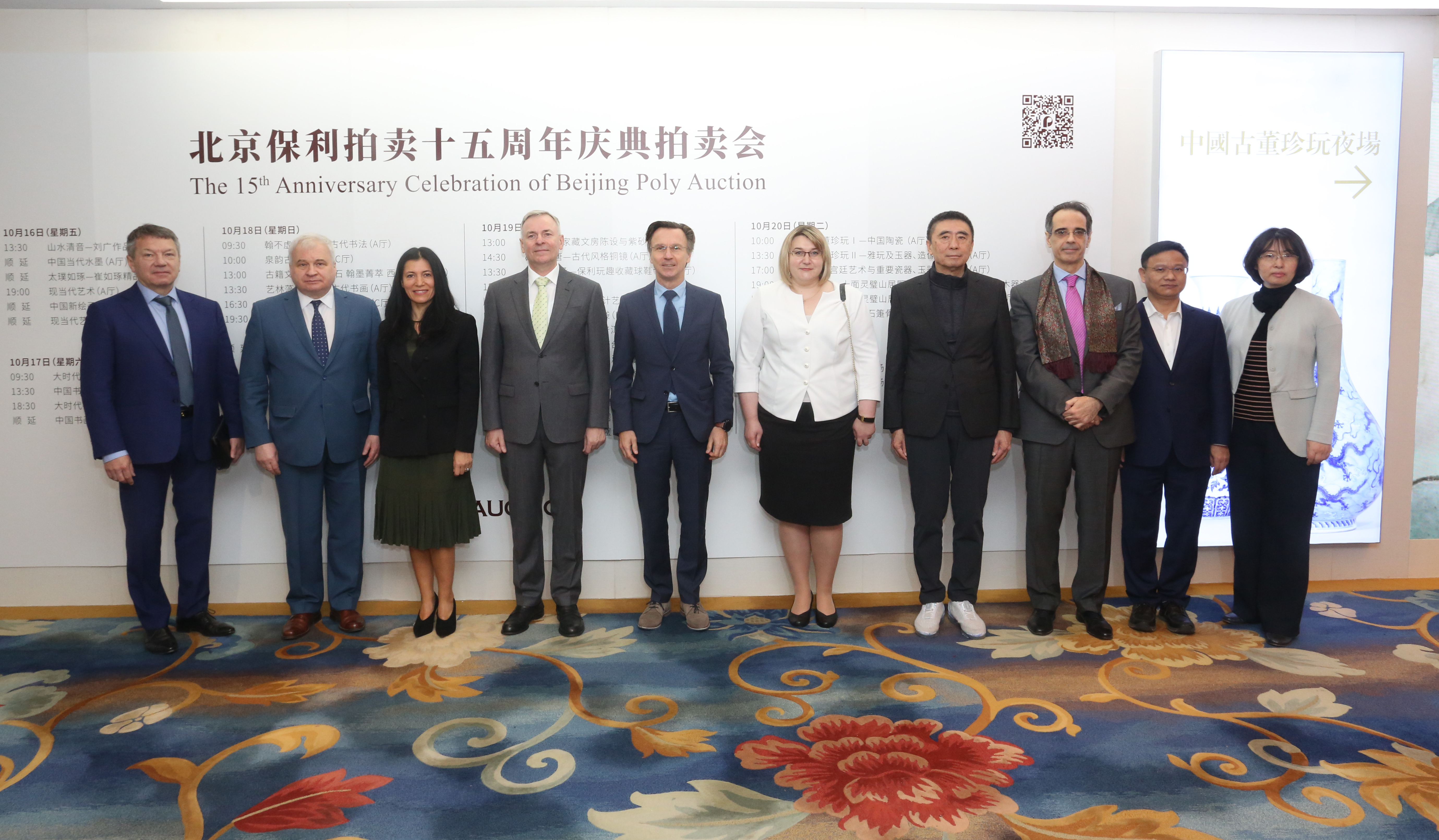 10月15日,来自俄罗斯、奥地利等7个国家的驻华使节代表,参观了在北京国贸大酒店举办的北京保利拍卖2020秋季拍卖会预展。现场,近现代书画、古代书画、现当代艺术、古董珍玩等千余件拍品亮相。保利集团董事长徐念沙,集团董事会秘书、保利文化常务副总经理李卫强,北京保利拍卖公司总经理王蔚等参加了使节会。
