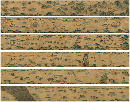 明代《丝绸之路大地图》描绘了古代丝绸之路的全貌,采用传统的手卷形式,描绘了从甘肃嘉峪关到中东麦加数千公里线路的主要城池和山川地貌,并用汉语标注了 211个由九种异域语言音译而来的明代地名,涉及亚、欧、非三大洲十多个国家和地区,其史料价值可与世界四大古地图相媲美。自5月13日起,地图原件在新保利大厦一层大堂展出一周时间。