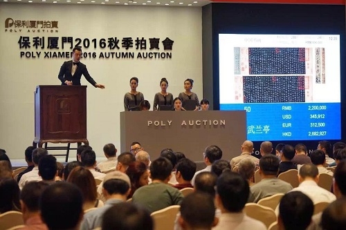 11月6日,保利厦门2016秋拍在厦门瑞颐大酒店顺利收槌,包括“中国书画”、“玄览-重要古董器物专场”、“中国古董珍玩”、“中西名酒及陈年好茶”、“现当代艺术”、“珠宝腕表与西洋古董”在内的六大专场呈现千余件艺术精品,最终实现总成交额1.5亿元。