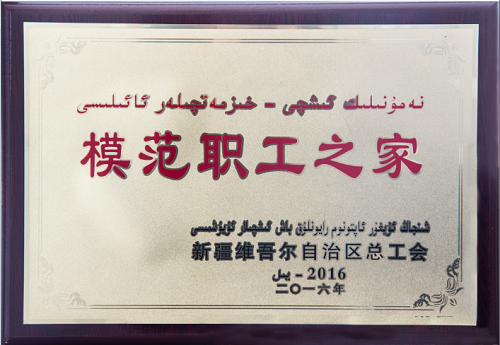 和翔公司荣获2016年度“自治区模范职工之家”牌匾