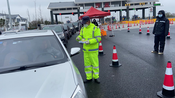 保利物业配合天凝镇政府对高速入城口进行人员防控