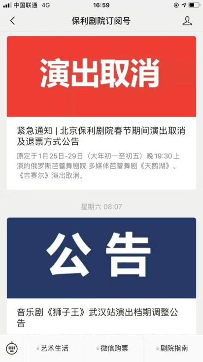 三是担当社会责任。坚持把公众健康放在首位,剧院公司取消三月底之前所有巡演项目,并妥善做好停演项目退票工作;保利影业根据片方的撤档情况,各影城相应采取休业措施;保利艺术博物馆、时间博物馆也发布闭馆公告,配合疫情防控。以上措施均通过微信公众号、官方网站向社会发布,得到社会各界广泛支持与好评。