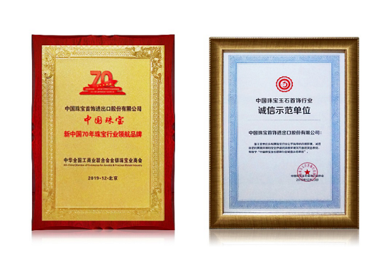 近日,工艺集团旗下“中国珠宝”品牌在行业权威评比中,获“新中国70年珠宝行业领航品牌”“中国珠宝玉石首饰行业诚信示范单位”“2019年度中国珠宝首饰行业美誉度TOP10”等殊荣。
