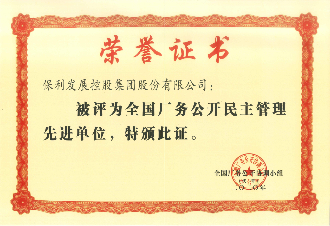 保利发展控股集团荣获“全国厂务公开民主管理先进单位”称号